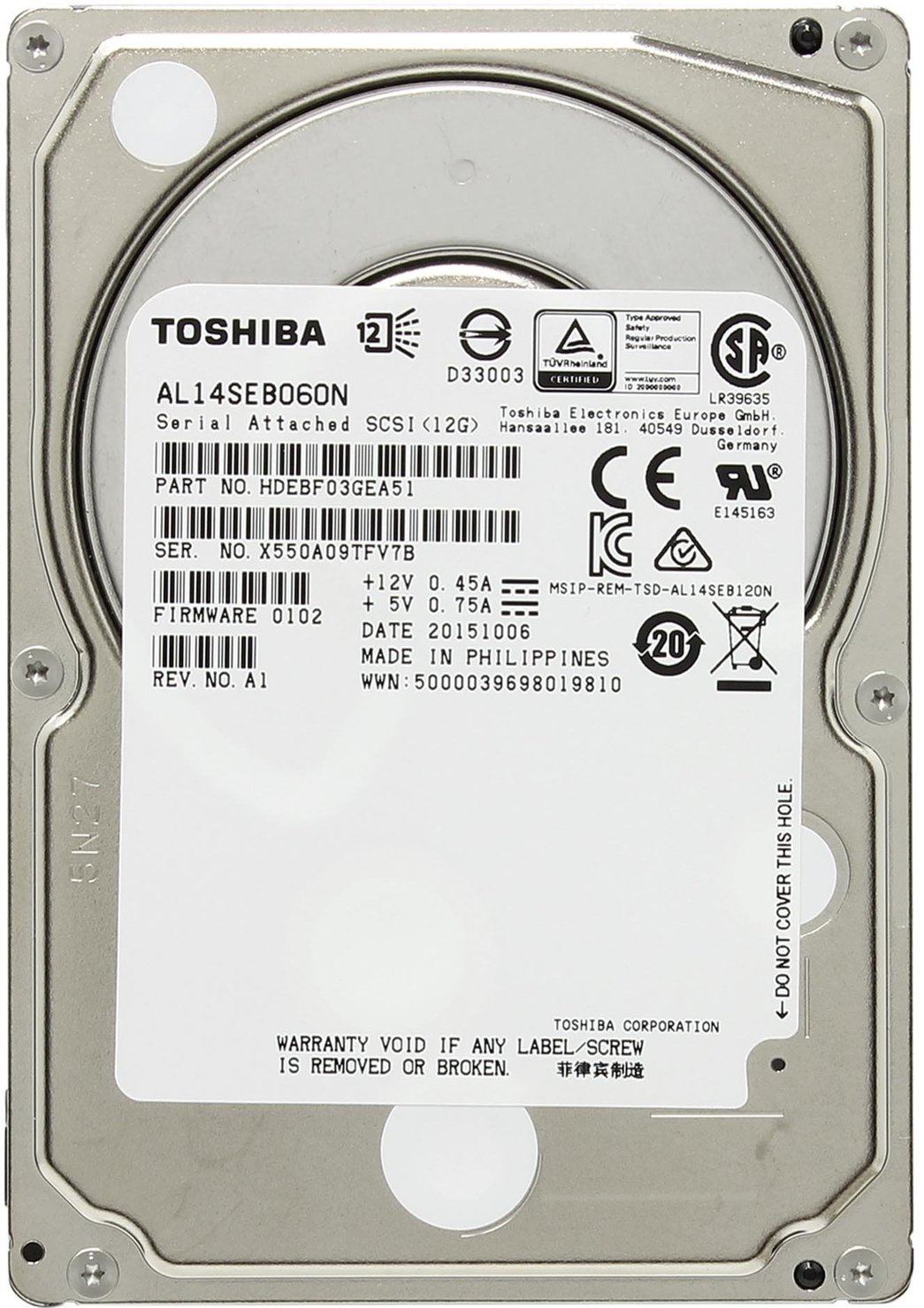 600 GB Rx215 МБайт/с Wx215 МБайт/с/SAS 3.0 15000 об/мин/AL14SEB060N