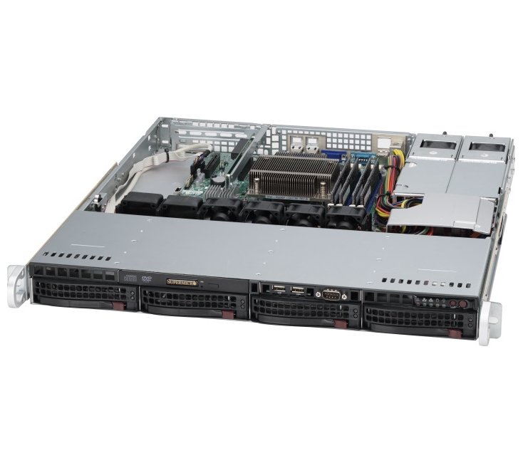 Supermicro SuperChassis 1U 813MTQ-R400CB/ no HDD(4)LFF/ 1xFH/ 2x400W Gold(9.6" x 9.6", 12" x 10")Micro-ATX, ATX/ Backplane 4xSATA/SAS