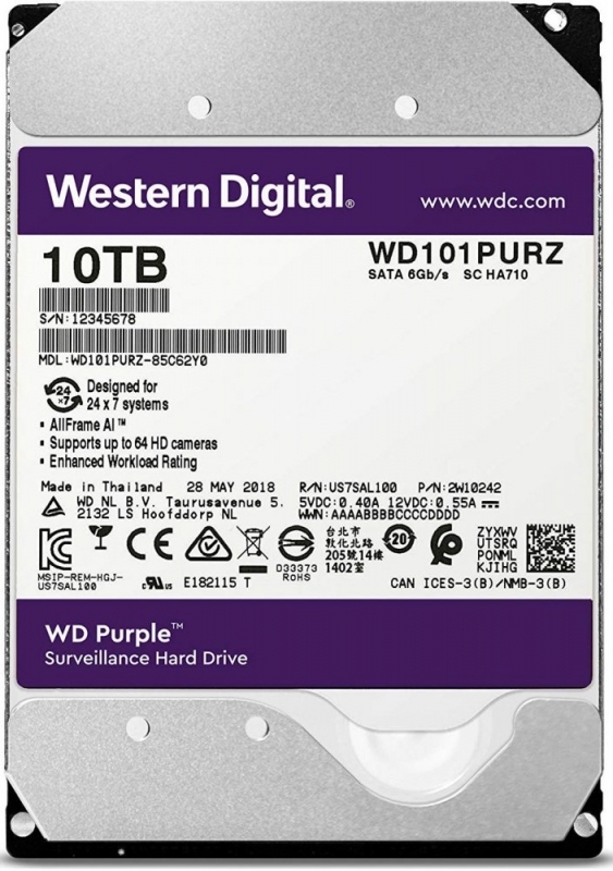 10 TB Rx235 МБайт/с Wx235 МБайт/с/SATA III 7200 об/мин/WD101PURZ