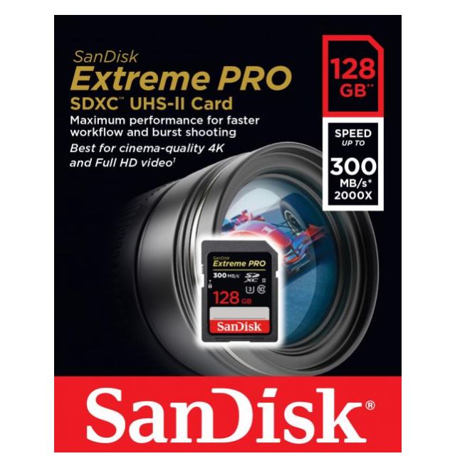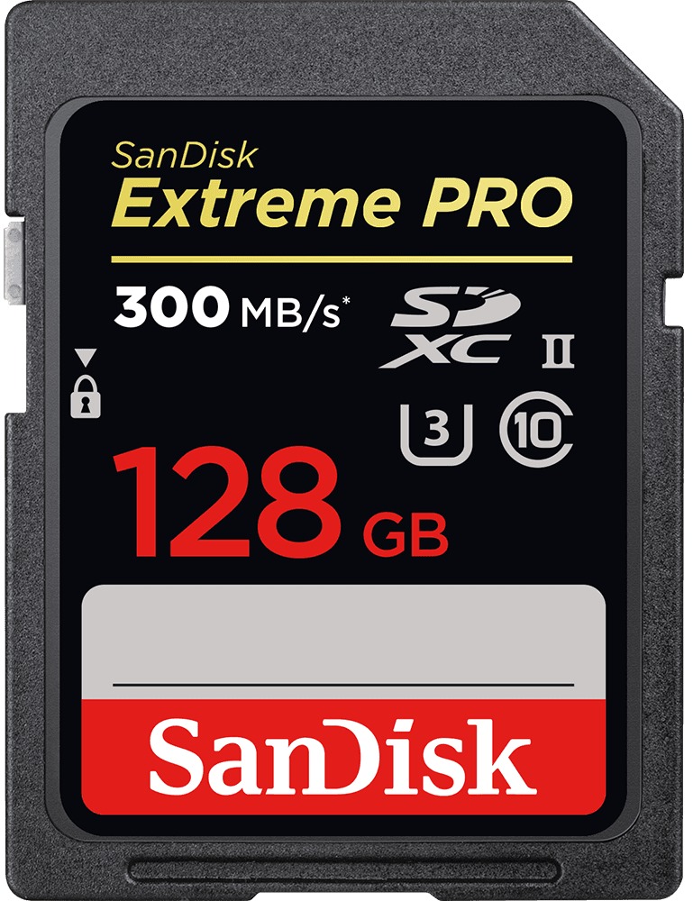 Объемx128 Гб SDXC UHS-II/Чтениеx300 МБ/с Записьx260 МБ/с