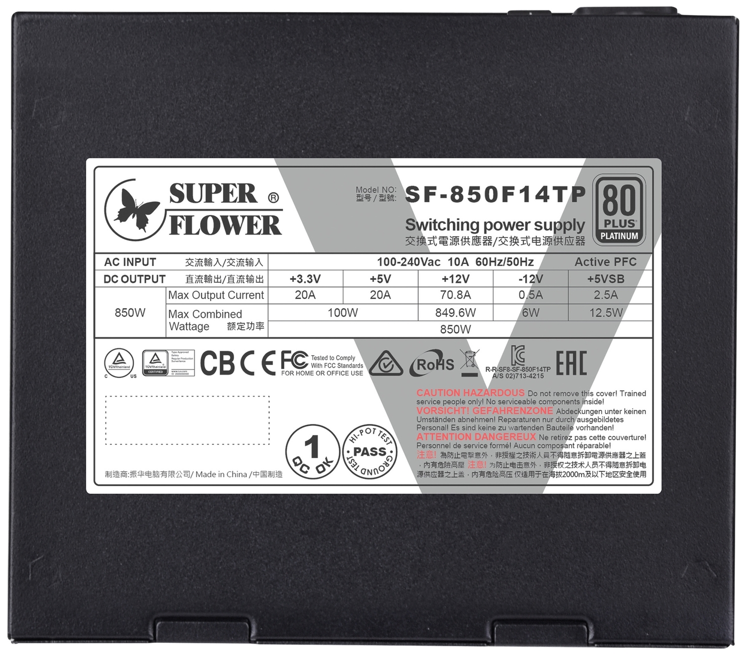 блок питания 850 Ватт/ Super Flower Power Supply Leadex V Pro Platinum, 850W, ATX, 120mm, 9xSATA, 3xPCI-E(6+2), APFC, 80+ Platinum, Full Modular SF-850F14TP